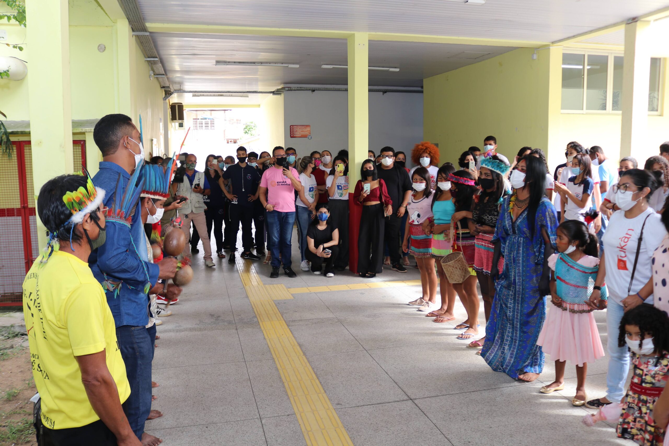 Na solenidade de abertura da exposição, estiveram presentes cantores, cantoras e representantes indígenas do Povo Guajajara (Aldeia Novo Funil e Lagoa Quieta – T.I Araribóia), no qual participaram de uma roda de conversa e realizaram uma apresentação cultural no pátio da universidade.