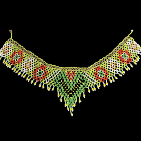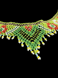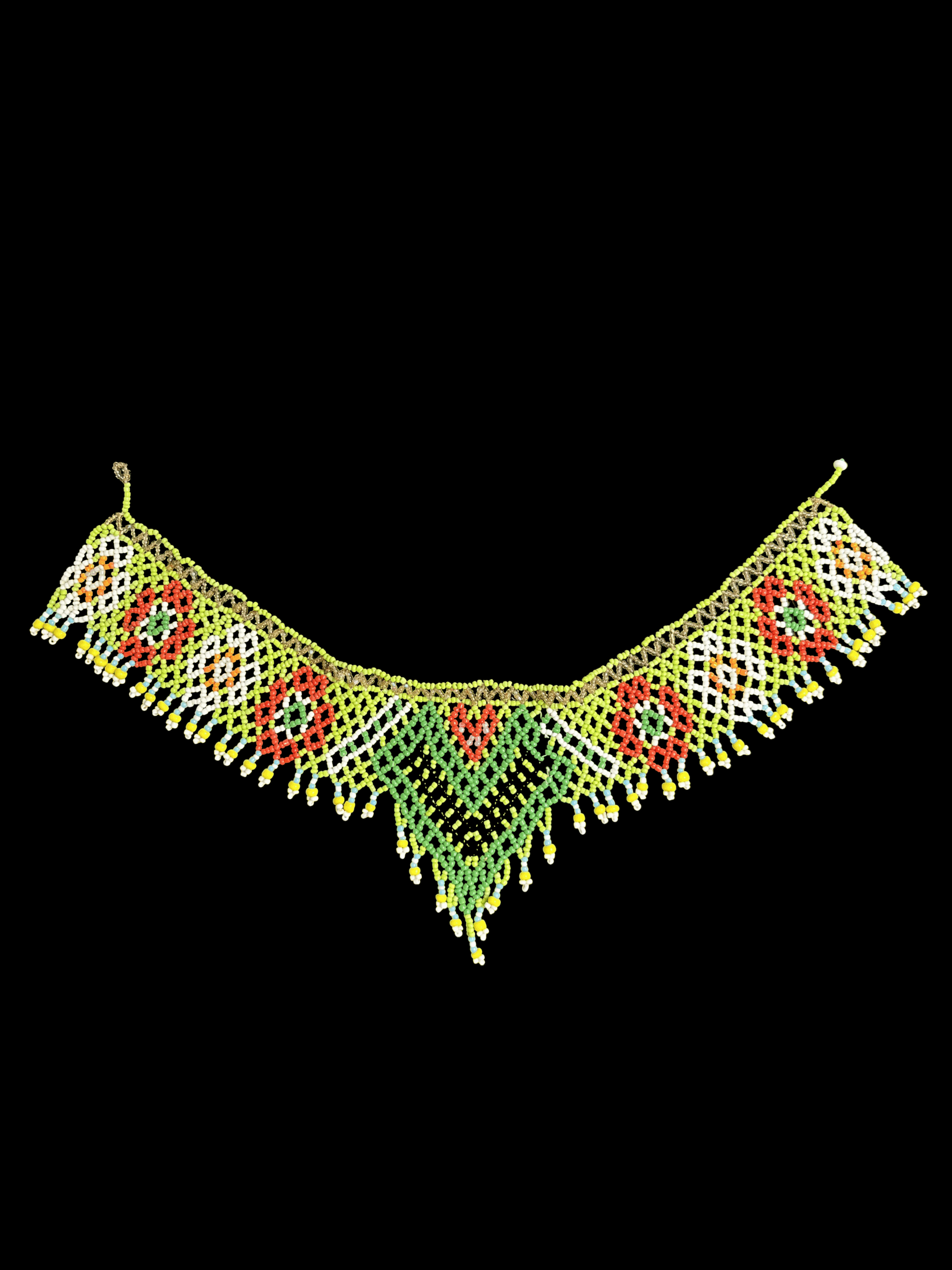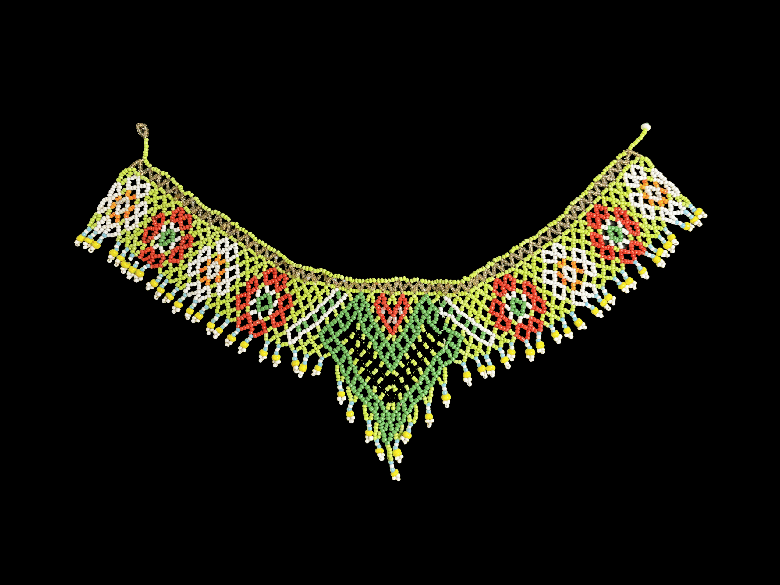 Coleção Acervo Etnológico Item Colar 26 de setembro de 2025 by Admin_museucpaht   Documento IMG_6016 Baixar Anexos IMG_6017 Metadados Miniatura Nome do objetoColarDescriçãoO colar é utilizado por mulheres, e apresenta varias cores de miçangas, formando desenhos geométricos e florais.LocalizaçãoEm exposição do museu CPAHT.Estrutura do ObjetoObjeto SimplesEstado de ConservaçãoBomMateriaisLinhas, miçangas.Formas de EntradaDoaçãoEtniaGuajajaraResponsável pelas informaçõesHelen Cristiny, Susana Guajajara e Ana Karolyne.CategoriaAdereçosFunção e UsoUtilizado no cotidiano ou em cerimonias de rituais.Texto simplesEntrelaçando por miçangas, nas cores verde, branco, vermelho, amarelo e laranja. Continuar navegando Saia Colar Voltar para a lista de itens